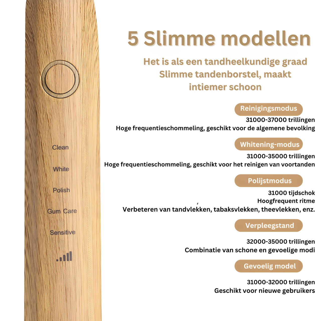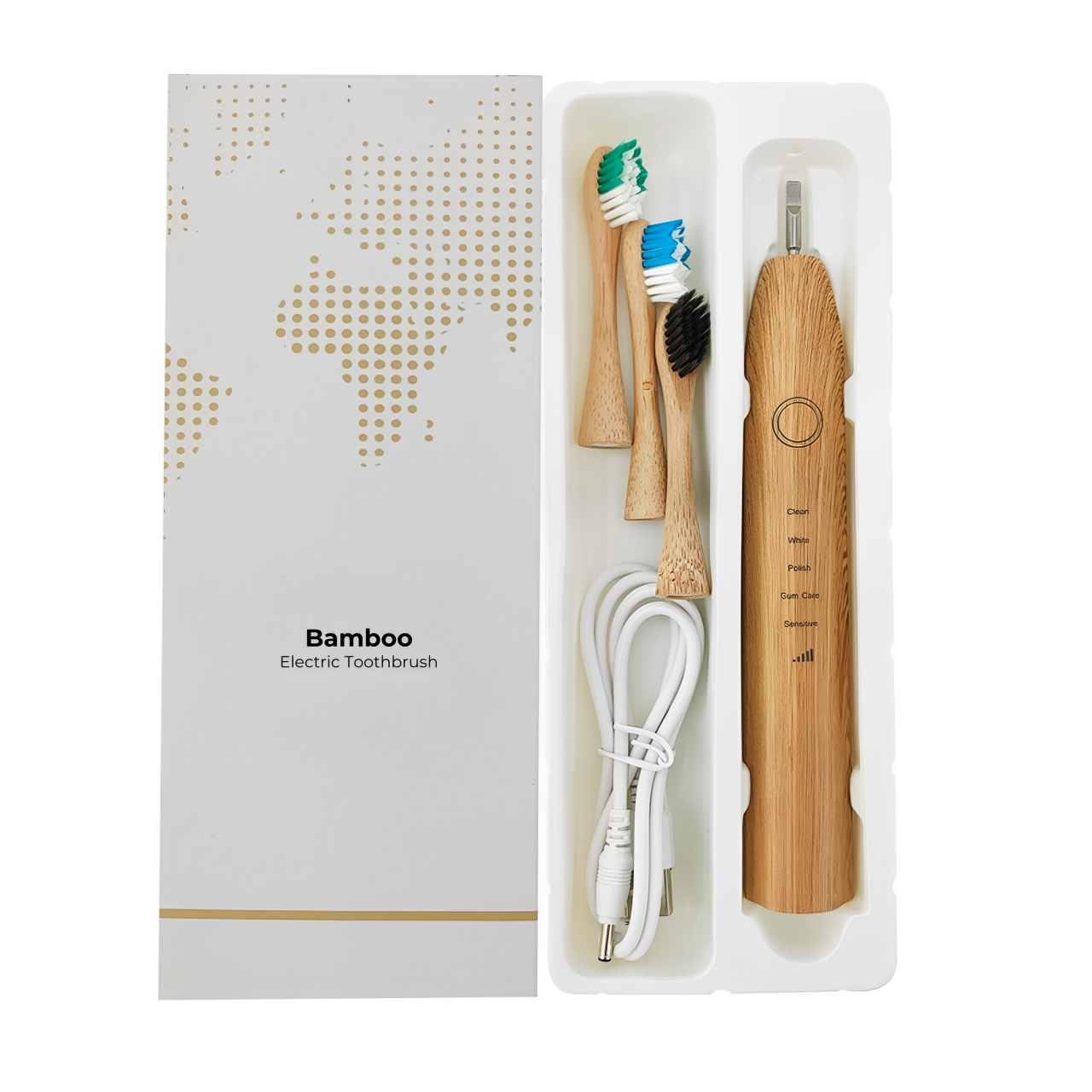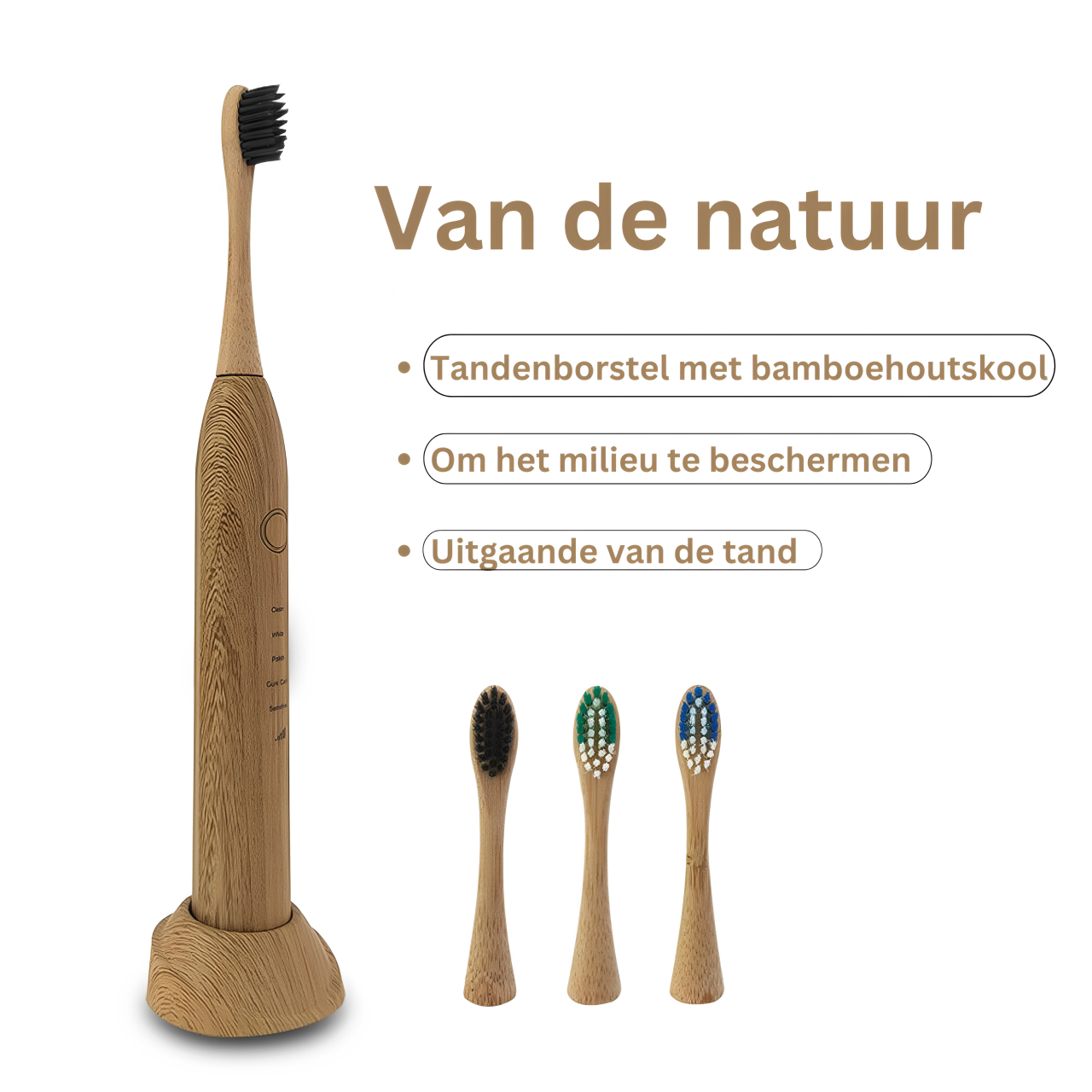 Laat je onderdompelen in de harmonie van duurzame mondverzorging met onze Bamboe Elektrische Tandenborstel. Vervaardigd uit biologisch afbreekbaar, milieuvriendelijk bamboe, belichaamt deze innovatieve tandenborstel de essentie van de natuurlijke ritme. Door de kracht van akoestische golven te benutten, biedt het een verfrissende tandheelkundige ervaring terwijl het de planeet koestert.