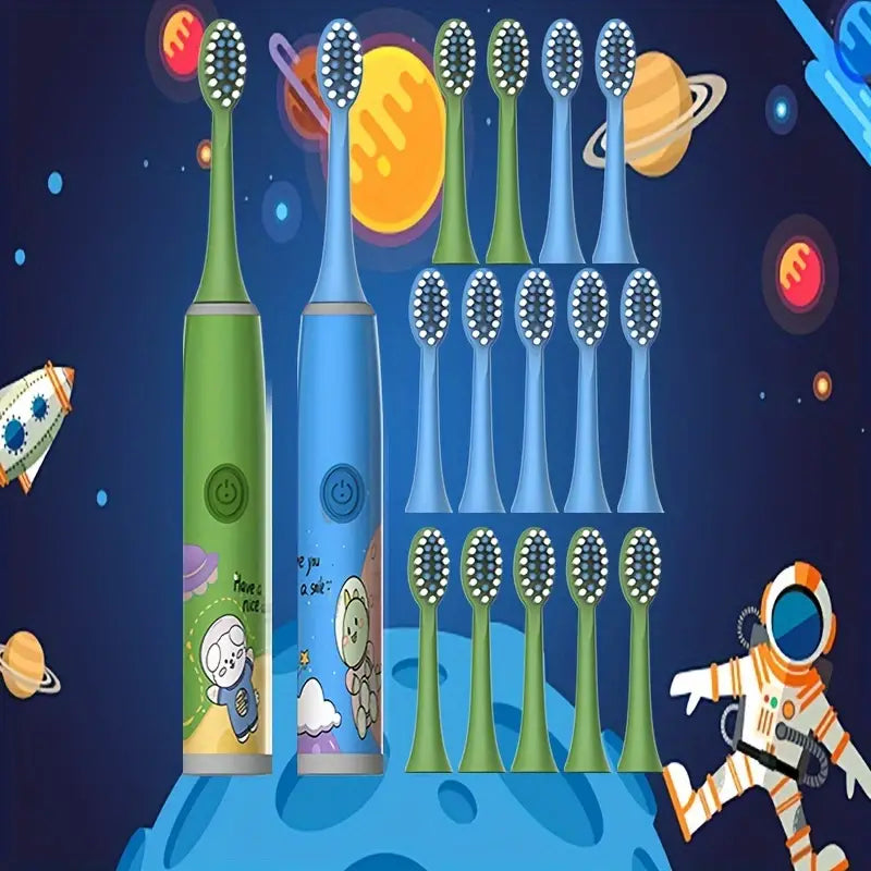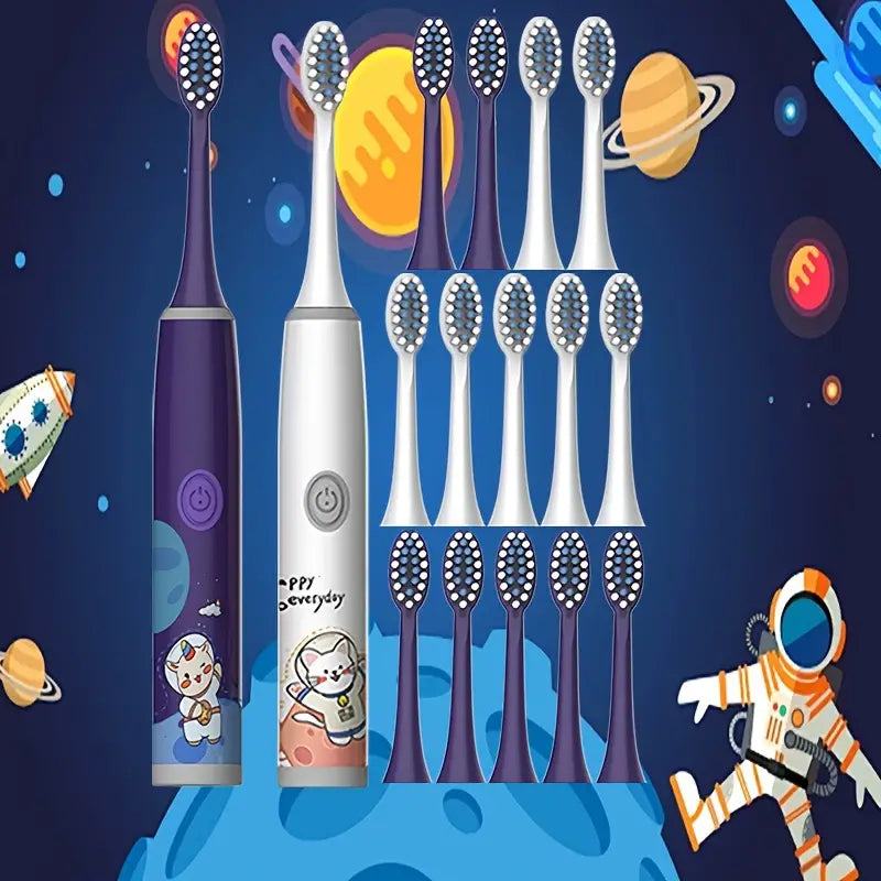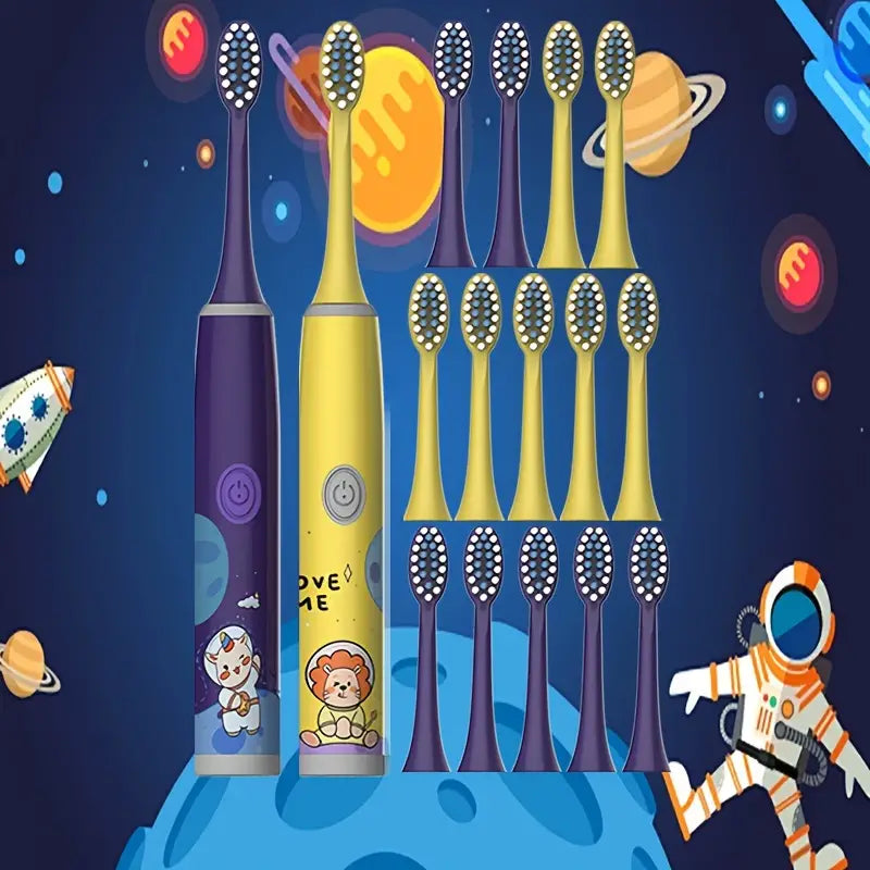 Onze innovatieve Elektrische Tandenborstelset neemt jonge avonturiers mee op een kosmische reis door uitmuntende tandheelkundige zorg. Met 16 opzetborstels en geïnspireerd door de wonderen van de ruimte, zorgt dit op batterijen werkende duo voor een grondige maar zachte reiniging voor kinderen van 3 tot 13 jaar. Gemaakt met extra zachte borstelharen om gevoelig tandvlees te beschermen, heeft elke borstel een 2-minuten intelligente timer voor optimale reiniging. Waterdicht en ontworpen om gezondere tanden te bevorderen, is het het perfecte cadeau om de verbeelding te prikkelen en excellente mondhygiënische gewoonten te bevorderen.